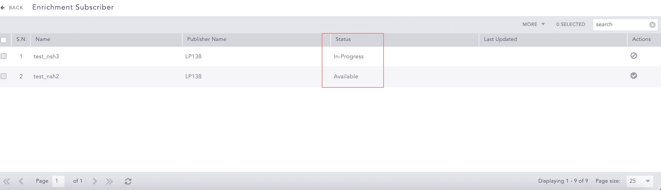The enrichment source is now removed from Logpoint SaaS. You can also select all the enrichment sources and remove them at once by clicking the More dropdown and selecting Unsubscribe All. To remove only the selected enrichment sources, click the More dropdown and select Unsubscribe Selected.