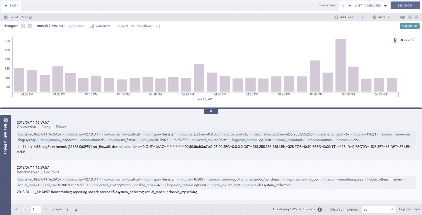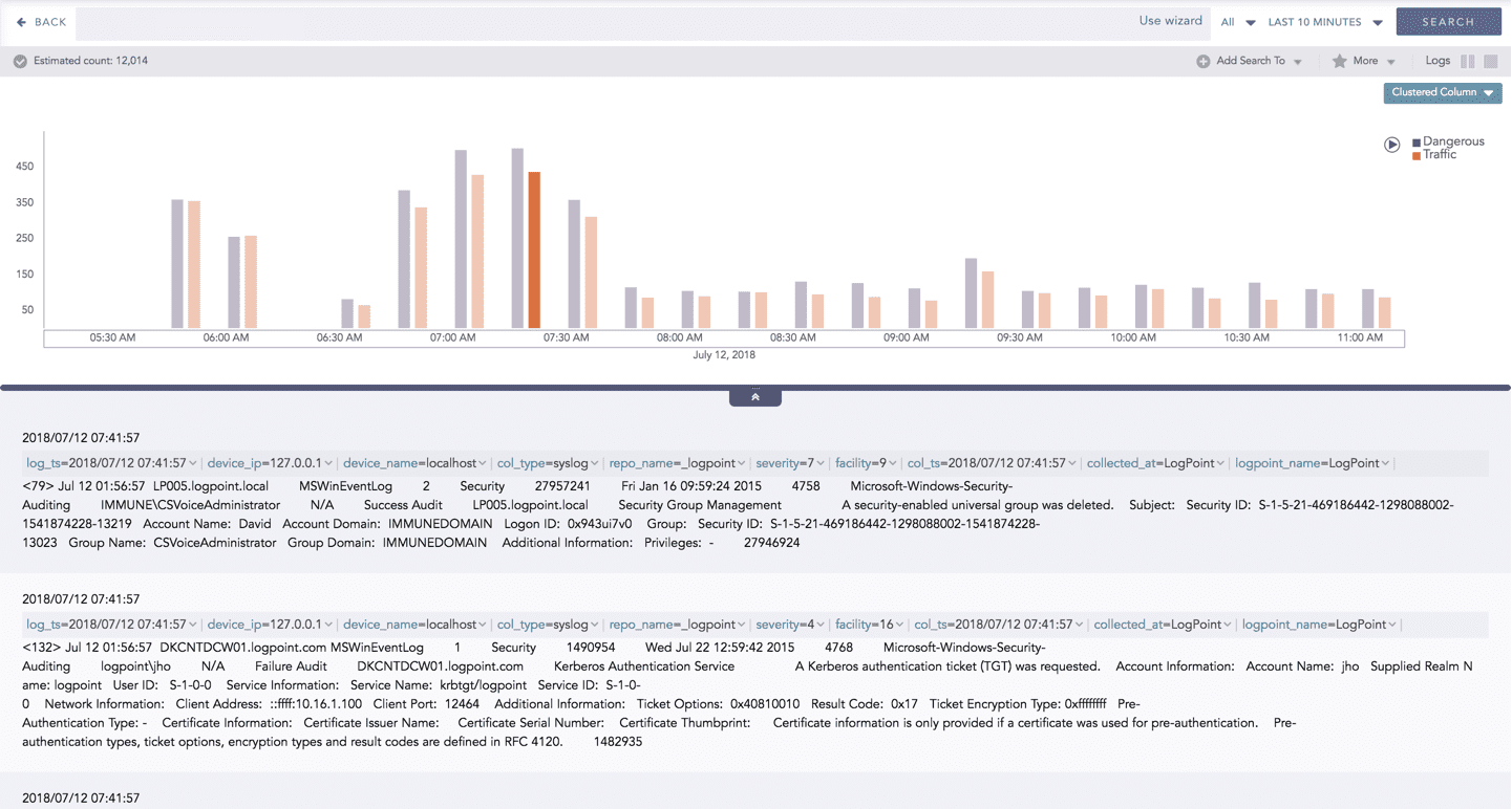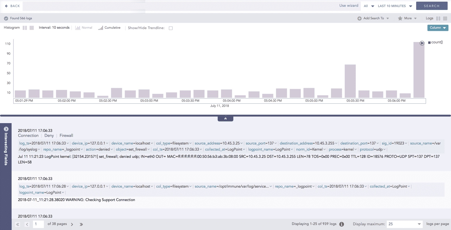 Logpoint visualizations support different response types, aggregation methods, and time-based grouping, allowing you to tailor how data is displayed based on your analysis needs. You can group results into time buckets for a selected time range, apply filters, and switch between visualization types to explore data from multiple perspectives.