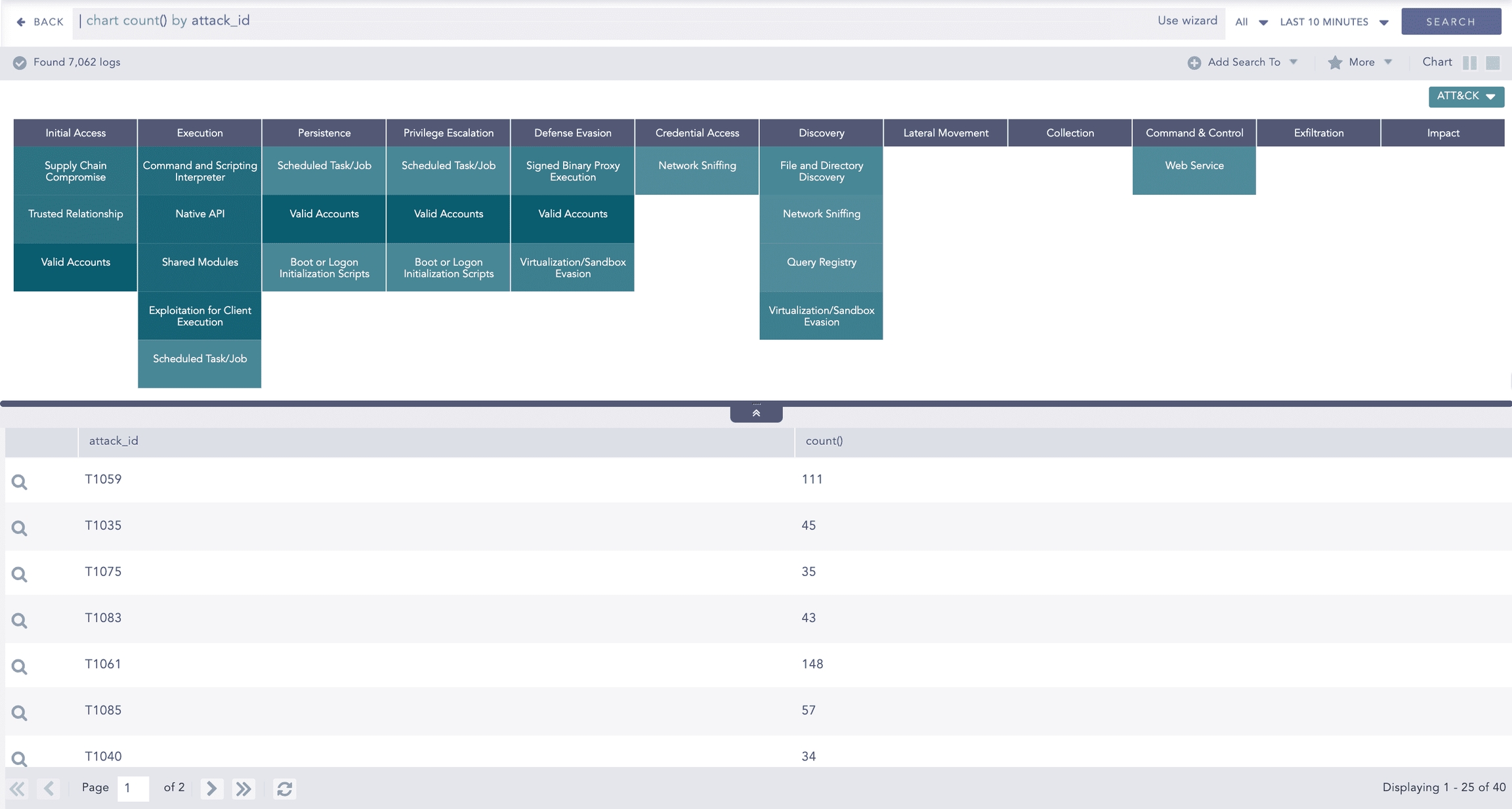 Visualizations are interactive and support actions such as drilldown, enabling you to move from high-level visual summaries to detailed search results for further investigation.