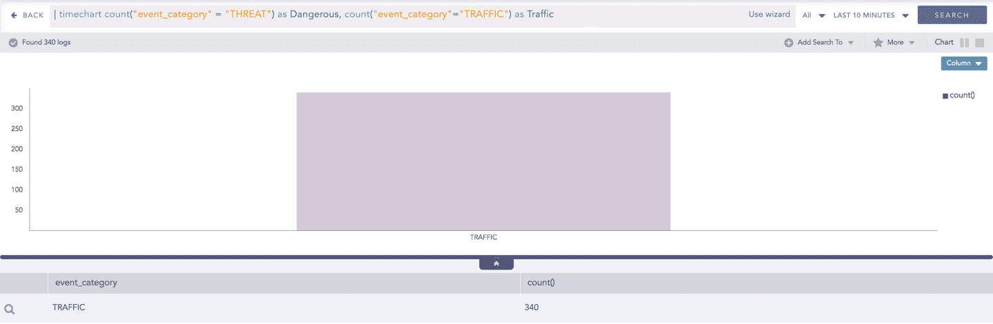 Timechart Single Aggregation without Grouping Syntax Example: