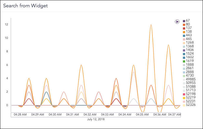 Widgets display search query results in a visual format, enabling real-time monitoring of logs. Each widget is based on a search query and represents a single view of that data. Widgets are added to dashboards, where multiple widgets are combined to provide an overview of activity across your environment.