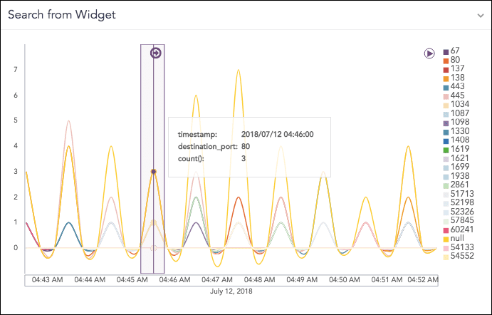 Dashboards and visualizations also support drilldown functionality that lets you move from a visual representation of data to detailed search results. This allows you to investigate events directly from charts and widgets without creating new searches manually.