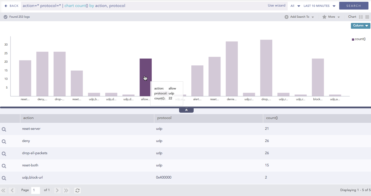 Visualize your search data as a dashboard, widget, or a graph.