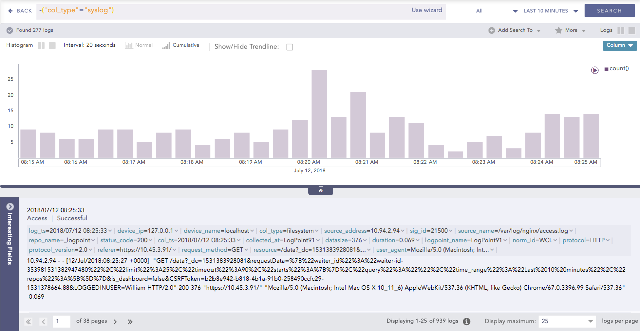 Fields log_ts, col_ts, msg, logpoint_name, repo-nameand label are not included in Interesting Fields.