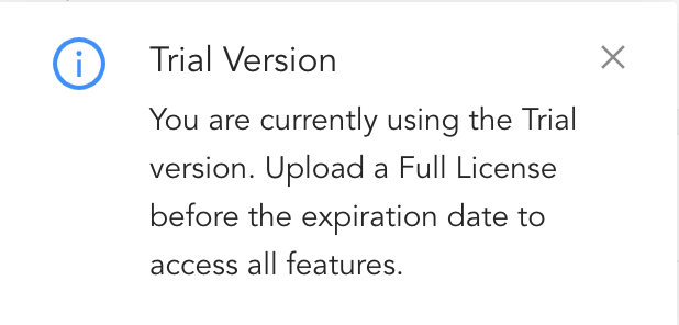 You can start using Logpoint for a 30-day trial. When using a trial version, a notification is displayed at the top-right corner that includes how many usage days you have left. After you purchase a license, it’s removed.