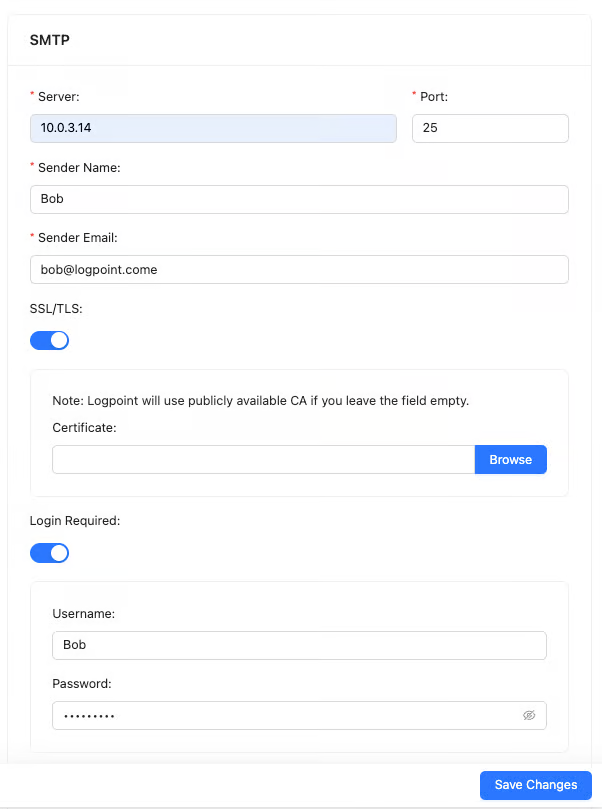 Use Simple Mail Transfer Protocol (SMTP) for email notifications (detections, alerts, incidents). If your mail server supports encryption, StartTLS encrypts the connection and sends emails in encrypted format. You must also configure SMTP before using the Data Privacy Module.
