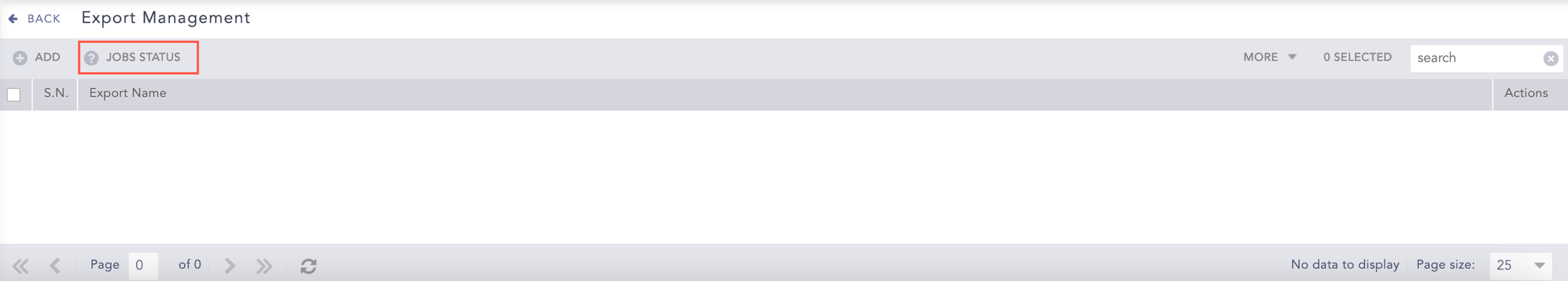 To delete multiple exports, select the exports, click the MORE dropdown, and select Delete Selected.