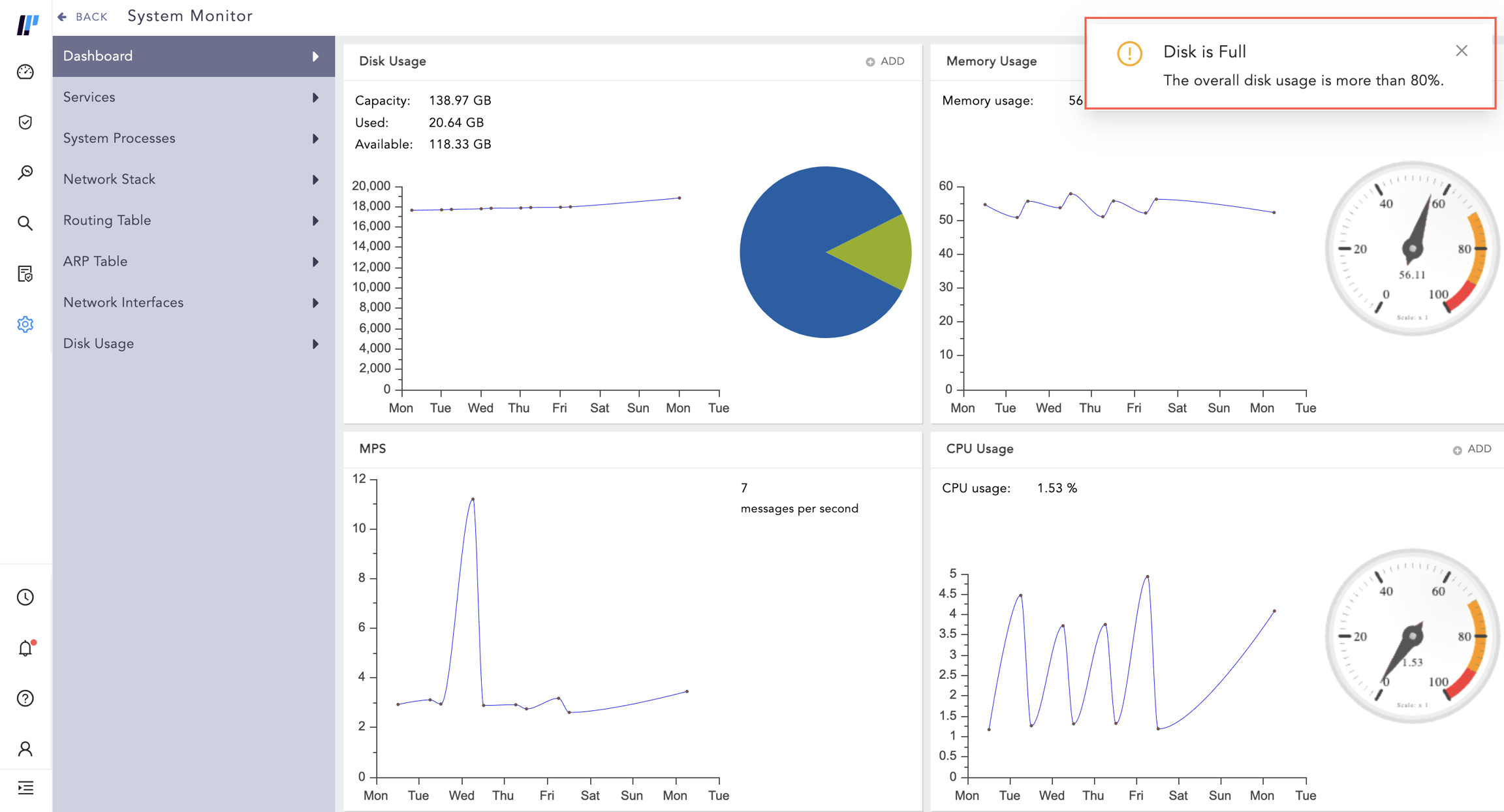 You can also set up a Logpoint-based notification for when Disk Usage reaches a specific level.
