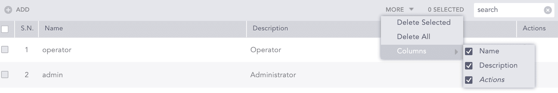 To add or remove which columns are visible, click the More dropdown, and click Columns. Deselect the columns not to display.