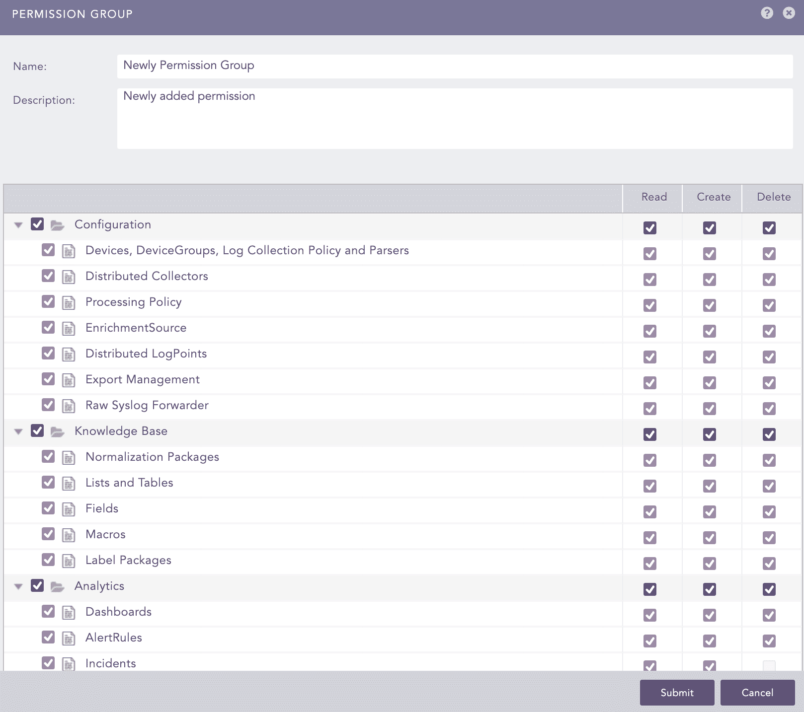 When a new permission group is added, it is reflected in Logpoint SIEM and SOAR automation of the users.